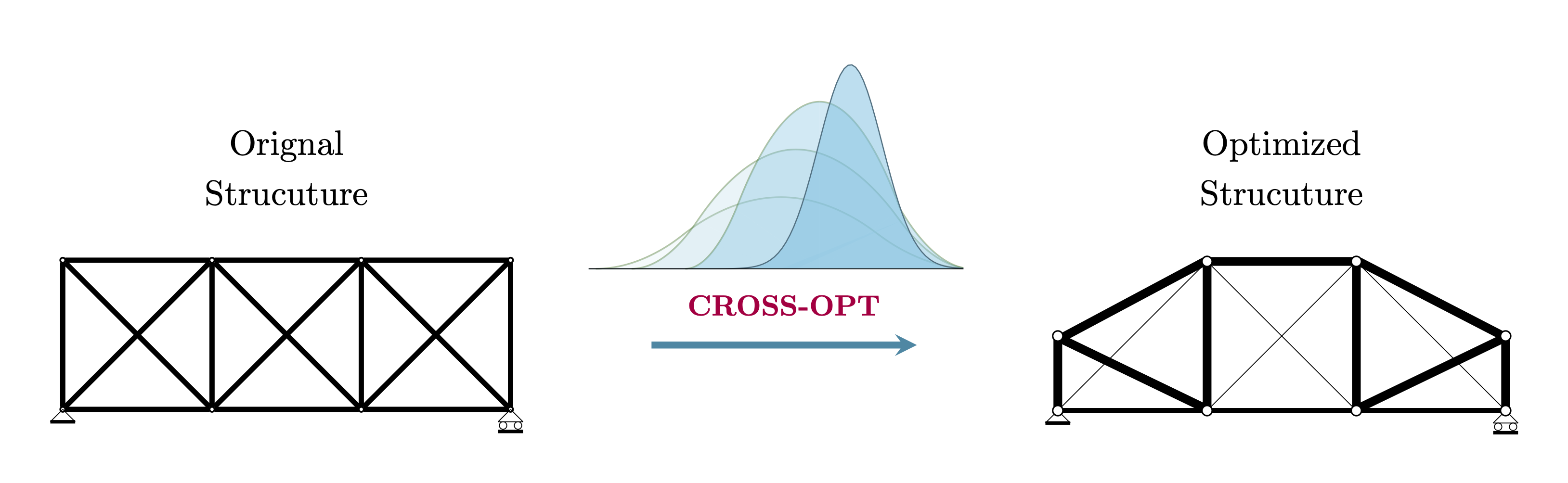 CROSS-OPT: Cross-Entropy Optimization for Truss Structures is a Matlab package that implements a framework for size and shape structural optimization of truss systems. The package leverages the Cross-Entropy (CE) method for global search optimization and employs an augmented Lagrangian formulation to handle equality and inequality constraints. With some straightforward adaptations, the CROSS-OPT strategy can also be applied to other structural systems and optimization problems.